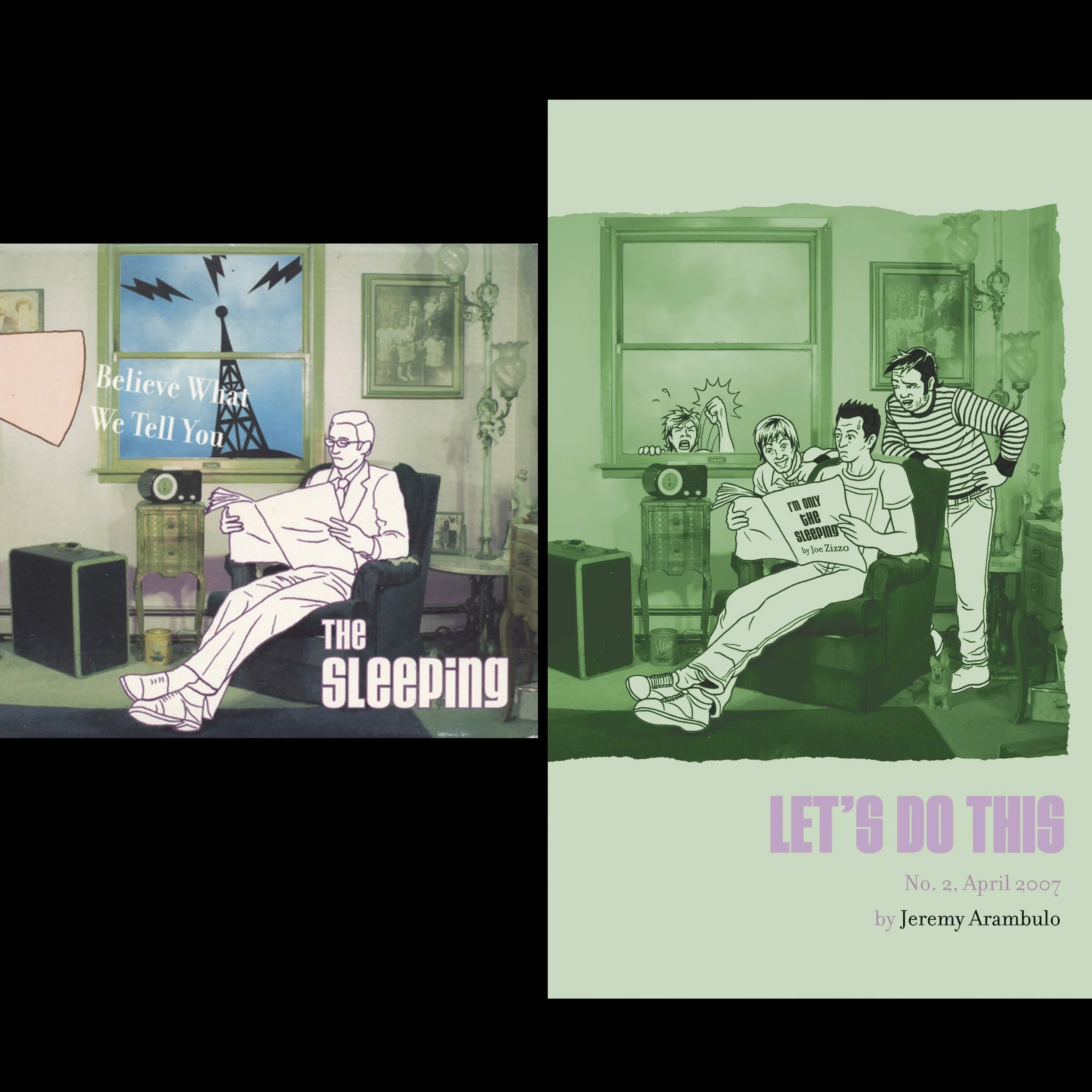 The story ended up in 2 parts as “Let’s Do This” issues 2-3, half of the copies being sold at The Sleeping’s merch table 2007-08. It only dawned on me after finishing the comic that the way Joe tells stories is what made those tour anecdotes entertaining to me… not the anecdotes themselves. Sure, I was living the nitty gritty road life vicariously through depicting them, but it was an early lesson on my limitations as a storyteller.
