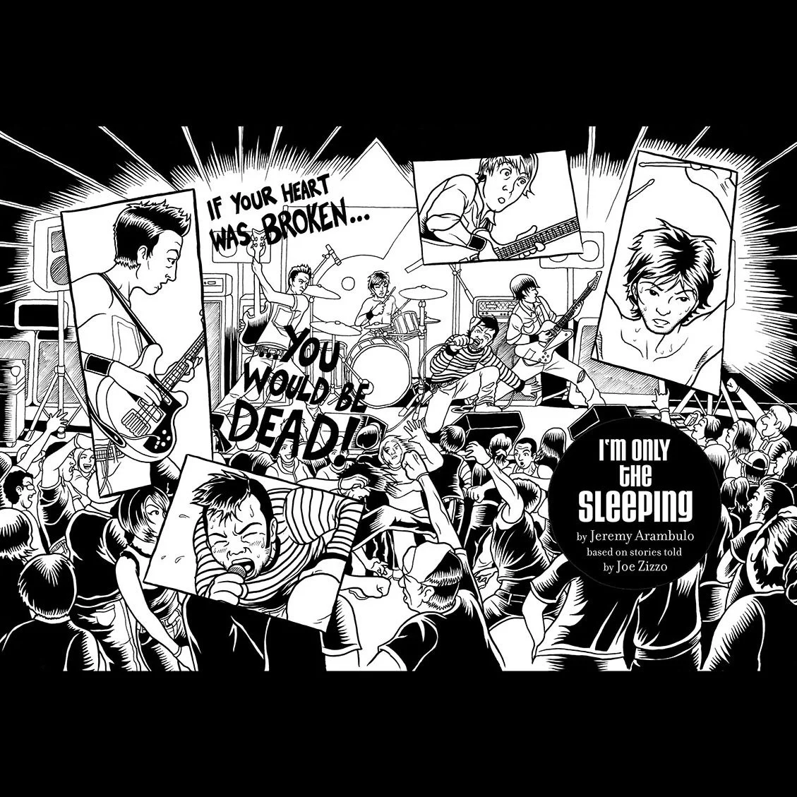 My first hurdle was tackling likenesses, which was [and remains] a weakness for me. Apologies to Joe, Cameron, Sal, and Doug for any potentially unflattering depictions! The second, much larger, hurdle was effectively conveying the energy of a live rock show in a silent medium.