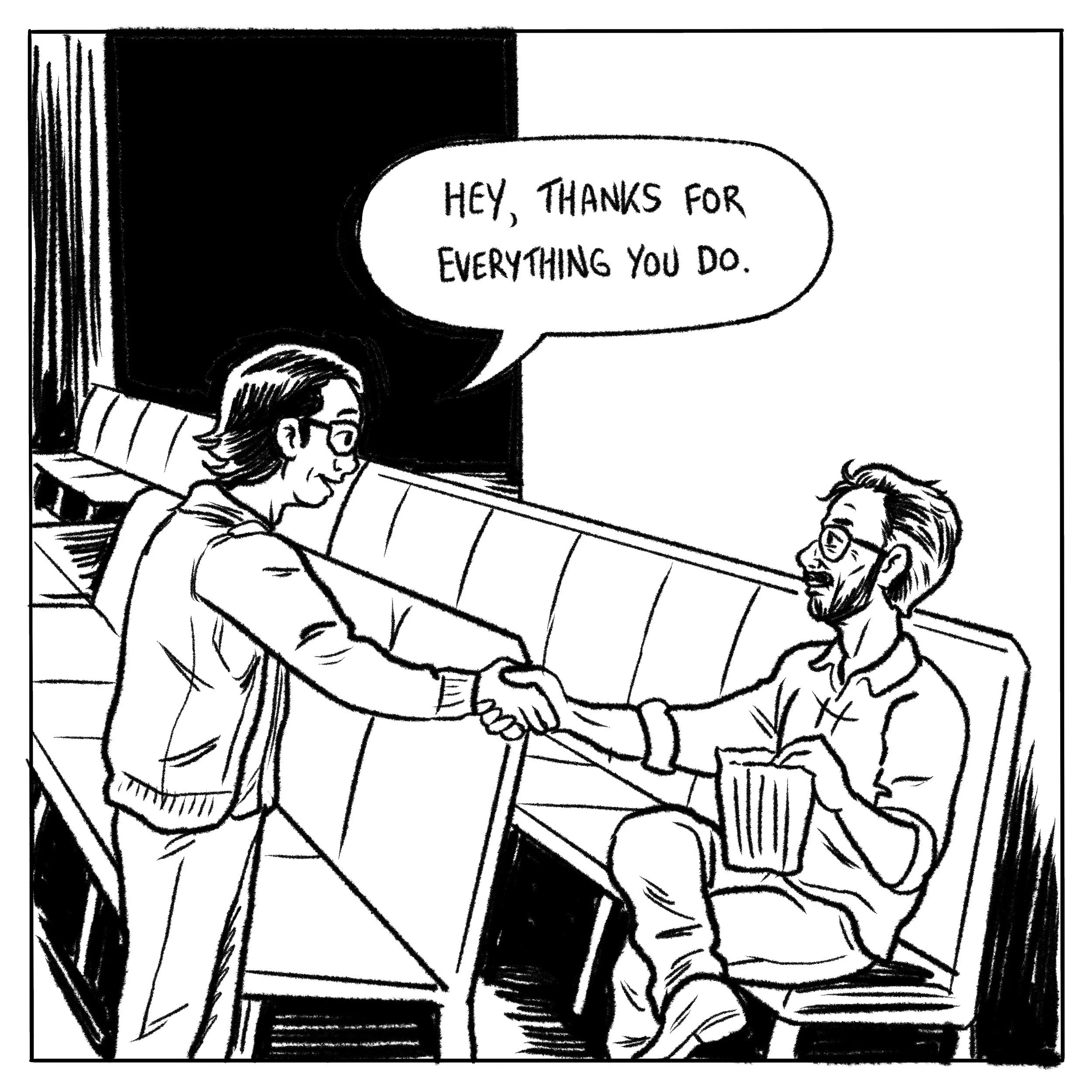 Written & drawn in tribute to the late, great Steve Albini, looking back on the first time I met him. July 2024.
